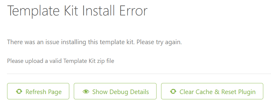 Error: Please upload a valid Template Kit zip file